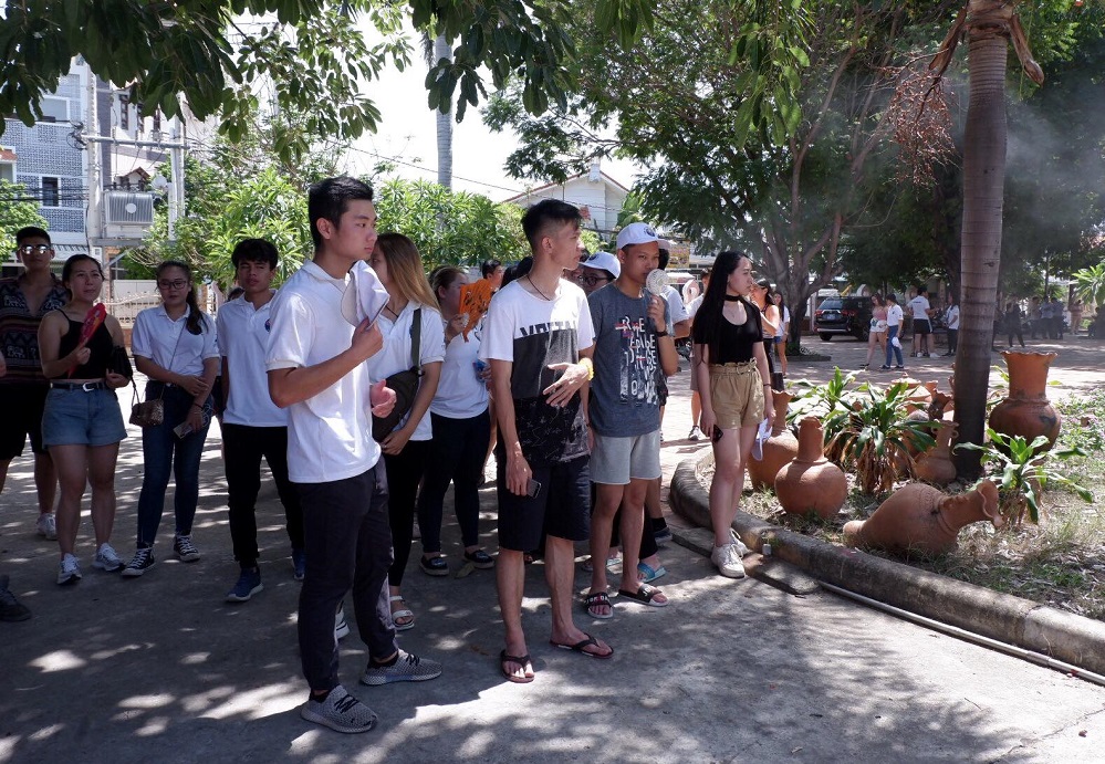 Các bạn trẻ kiều bào tìm hiểu về lễ hội Cầu ngư của ngư dân ven biển Ninh Thuận.