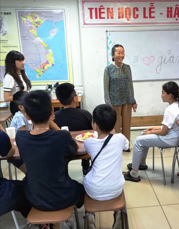 Bà Thanh Hoa, Giám đốc Trung tâm Thương mại Azia cũng đã theo sát các hoạt động của Khóa học. Là một cựu giảng viên Đại học, bà xúc động chia sẻ cùng các cháu, mong các cháu luôn nhớ về nhau, nhớ về những kỷ niệm ở lớp học tiếng Việt.