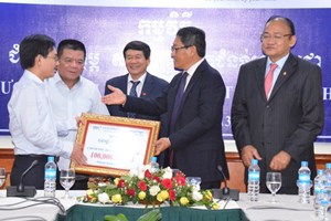 (VOV5) - Sáng 11/11, Ngân hàng Đầu tư và Phát triển Việt Nam (BIDV) tổ chức lễ trao tặng quà giúp nhân dân Campuchia khắc phục hậu quả lũ lụt nghiêm trọng trong năm 2013.