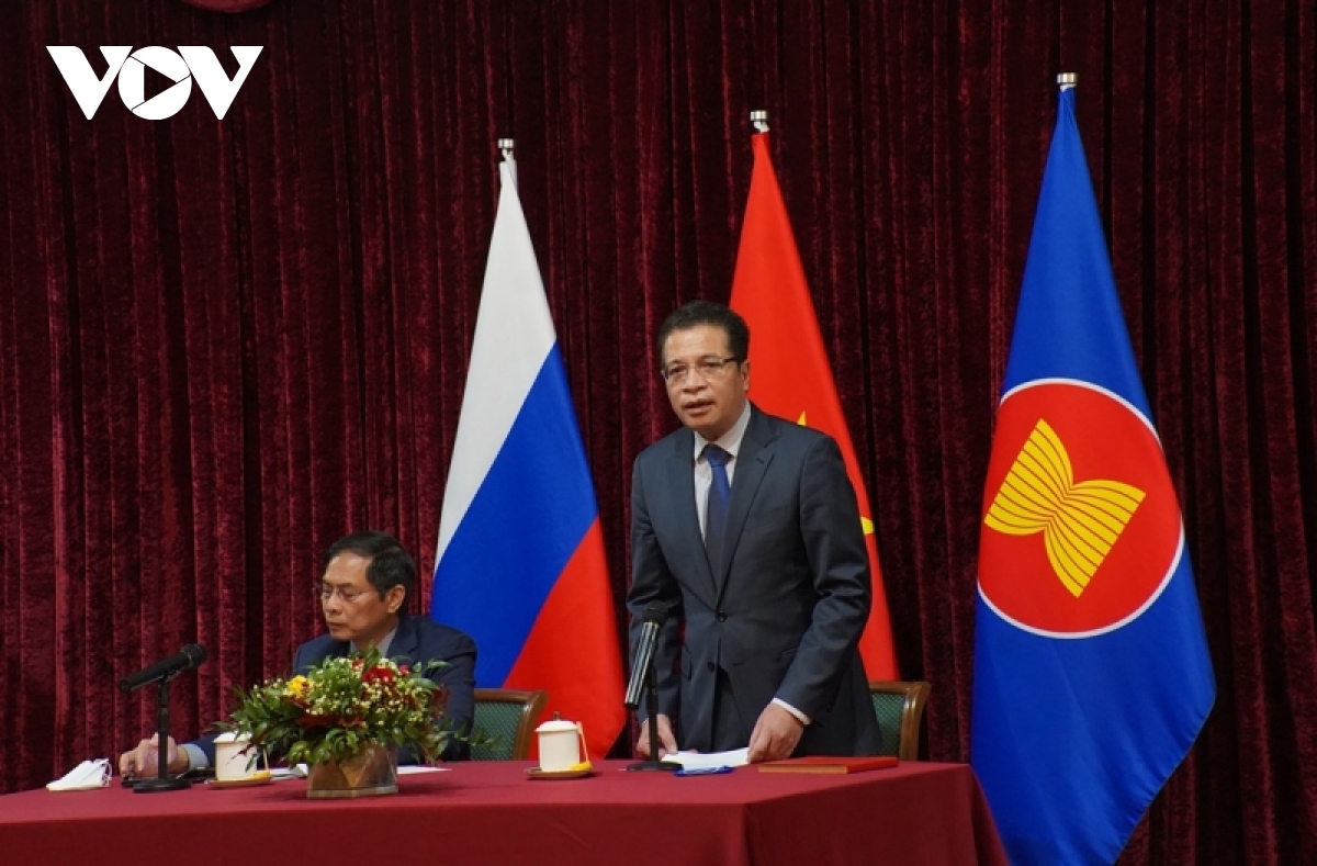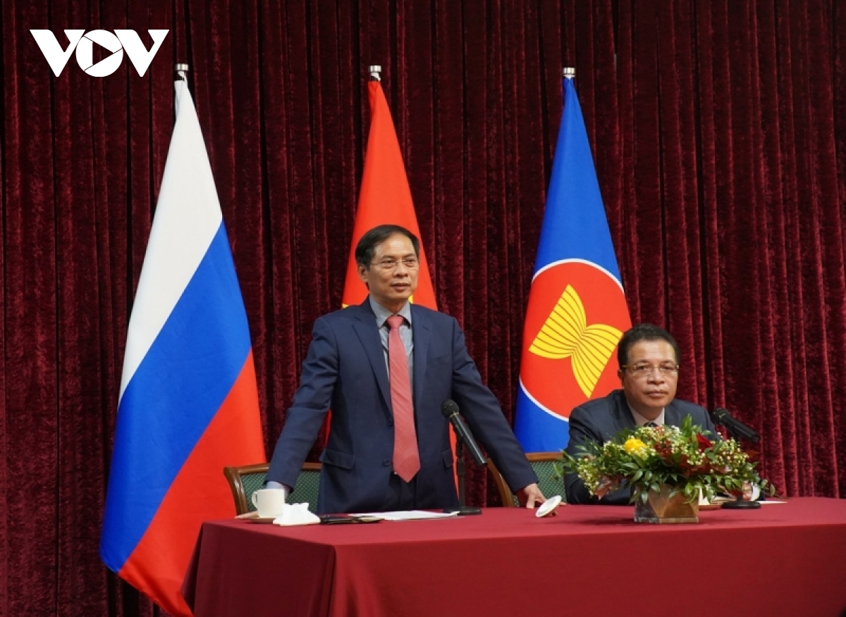 Đề cập đến mối quan hệ Việt Nam-Liên bang Nga, Bộ trưởng Bùi Thanh Sơn nhấn mạnh, Đảng và Nhà nước ta đặc biệt cọi trọng mối quan hệ đối tác chiến lược toàn diện giữa hai nước. Bộ trưởng nêu những trụ cột chính tạo nên nét đặc trưng của mối quan hệ giữa hai nước, bao gồm: hợp tác an ninh – quốc phòng; hợp tác trong lĩnh vực năng lượng, dầu khí; giáo dục và đào tạo. Trong thời gian qua, dù có những khó khăn do đại dịch Covid-19 gây ra, song lãnh đạo cấp cao hai nước vẫn duy trì tiếp xúc, điện đàm.