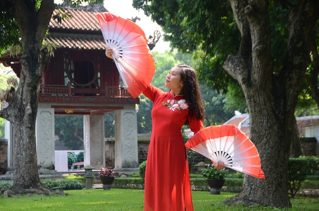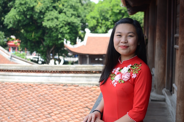 Cô gái Huyền Anh ở CHLB Đức được nhiều thành viên trong đoàn thanh thiếu niên kiều bào quý mến bởi cách nói chuyện bằng tiếng Việt dễ thương và đặc biệt là thể hiện những điệu múa dân tộc uyển chuyển từ buổi khai mạc đến bế mạc trại hè Việt Nam 2017.