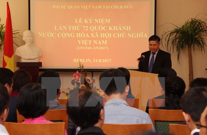 Chiều 31/8, tại Berlin, Đại sứ quán Việt Nam tại Đức tổ chức trọng thể Lễ kỷ niệm 72 năm Cách mạng Tháng Tám và Quốc khánh 2/9 với sự tham dự của đại sứ và cán bộ, nhân viên Đại sứ quán, các cơ quan đại diện Việt Nam tại Đứccùng đại diện các hội đoàn, doanh nghiệp, cộng đồng người Việt tại CHLB Đức.