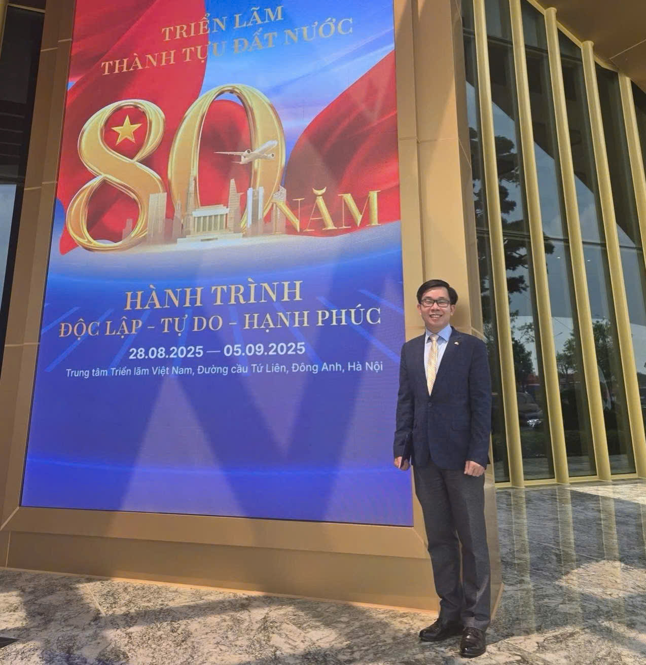 Nguyễn Thanh Liêm, Phó Chủ tịch Tổng hội người Việt Nam ở Hàn Quốc tranh thủ thăm triển lãm Hành trình Độc lập - Tự do- Hạnh phúc tại Đông Anh, Hà Nội. Ảnh nvcc |