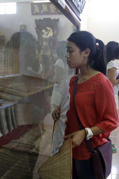 Hà Mi cùng các bạn trong đoàn Trại hè Việt Nam 2012 thăm quan Bảo tàng Quang Trung (Bình Định) |