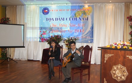 Trong buổi tọa đàm cuối năm, các ca sĩ Cộng đồng như Kim Khuê, Hồng Hoa và các bạn sinh viên đã có những tiết mục văn nghệ đắc sắc phục vụ khán giả.