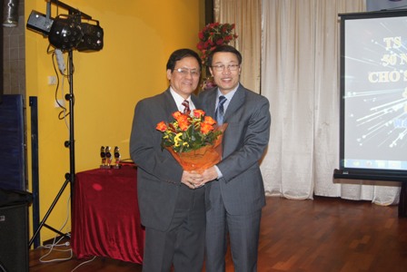 | Hội Người Việt Nam tại Ba Lan đoàn kết và hữu nghị tặng hoa tiến sĩ Đào Duy Tiến. |
