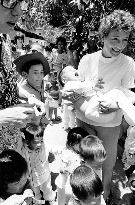 Loan Shillinger, ở San Francisco, trong chuyến quay về Sài Gòn, nay đã là TP Hồ Chí Minh, vào tháng 6/1996. Shillinger là một trong những đứa trẻ Mỹ đưa ra khỏi Việt Nam suốt những ngày cuối của cuộc chiến tranh. Cô đưa vòng tay đánh số sơ sinh, cùng tên và địa chỉ của trại trẻ cũ để hỏi thăm thông tin từ các xơ.