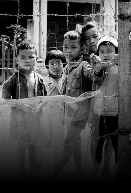 Chỉ huy hải quân Mỹ John S. McCain thăm trại trẻ mồ côi Holt ở Sài Gòn ngày 30/10/1974. Đây là nơi nuôi dưỡng nhiều trẻ em có cha là quân nhân Mỹ.