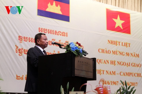 Tối 22/6, Đại sứ quán Việt Nam tại Campuchia tổ chức chiêu đãi trọng thể chào mừng 50 năm quan hệ ngoại giao Việt Nam - Campuchia (24/6/1967-2017).