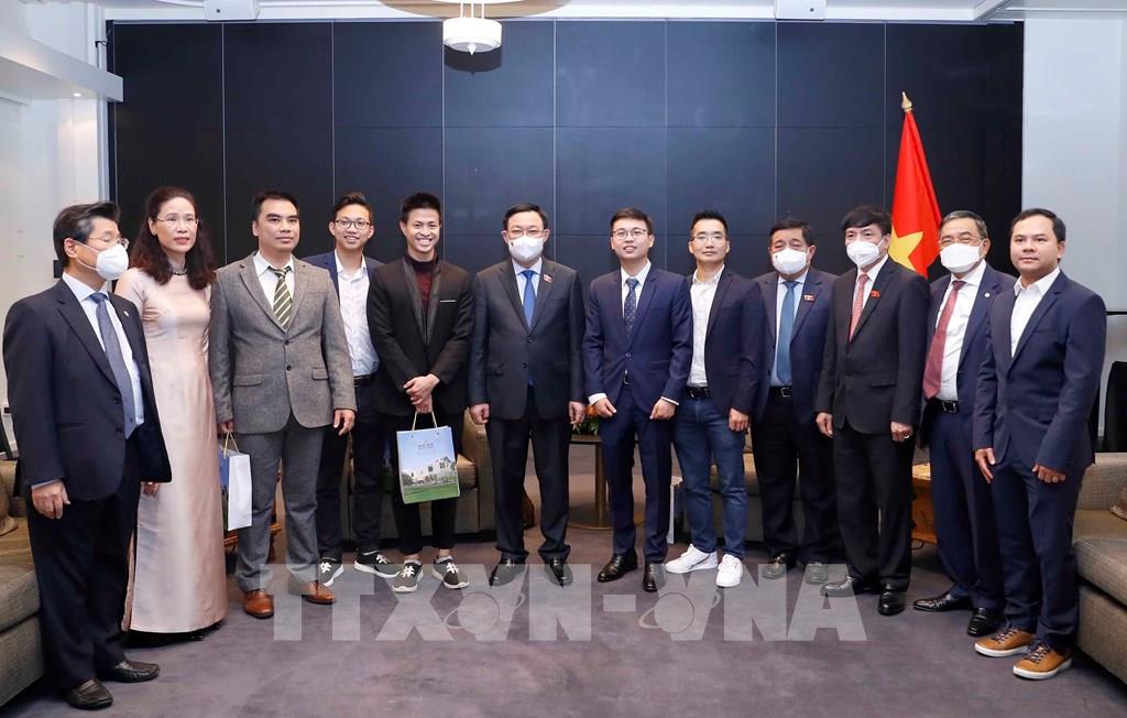 Chia sẻ với các doanh nhân trẻ, Chủ tịch Quốc hội biểu dương những nỗ lực khởi nghiệp và thành công bước đầu của các doanh nghiệp trẻ gốc Việt tại Phần Lan; cho rằng đây là những kết quả rất có ý nghĩa cho thấy trí tuệ, năng lực của người trẻ Việt Nam tại quốc gia được đánh giá có hệ sinh thái đổi mới sáng tạo phát triển bậc nhất trên thế giới. Chủ tịch Quốc hội Vương Đình Huệ cho rằng các lĩnh vực mà doanh nghiệp trẻ gốc Việt tại Phần Lan đang hướng tới đều phù hợp với xu hướng phát triển của thế giới và nhu cầu ở trong nước. Đánh giá cao các doanh nhân trẻ người Việt mong muốn đưa các công nghệ mới về Việt Nam, Chủ tịch Quốc hội Vương Đình Huệ nêu rõ Đảng và Nhà nước rất trân trọng đội ngũ trí thức, doanh nhân trẻ ở cả trong nước và nước ngoài, xem đây là nguồn lực quý báu đối với sự phát triển của đất nước; đồng thời khẳng định Quốc hội, Chính phủ, các Bộ, ngành trong nước luôn sẵn sàng hỗ trợ, tạo điều kiện thuận lợi nhất cho các doanh nghiệp.