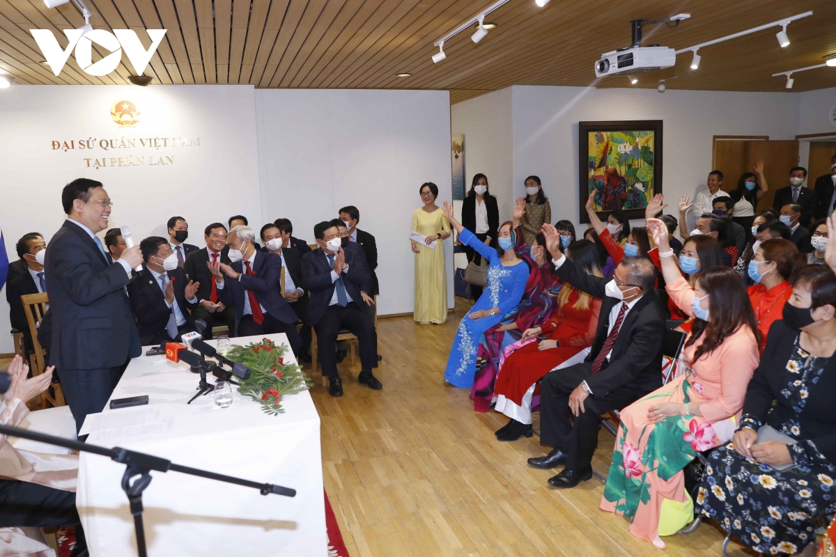 Chủ tịch Quốc hội Vương Đình Huệ ghi nhận đánh giá cao những tình cảm của cộng đồng người Việt Nam tại Phần Lan luôn hướng về Tổ quốc, đồng thời ghi nhận những kiến nghị của bà con.