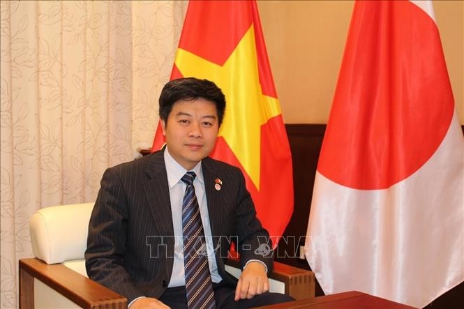 Ông Nguyễn Đức Minh, Công sứ Đại sứ quán Việt Nam tại Nhật Bản trả lời phỏng vấn về trận động đất bán đảo Noto và công tác bảo hộ công dân. Ảnh: TTXVN |