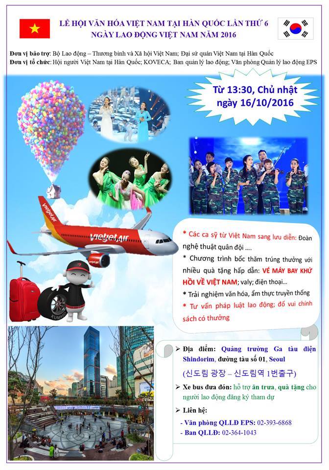 (VOV5) - Lễ hội Văn hóa Việt Nam tại Hàn Quốc lần thứ 6 sẽ được tổ chức vào ngày Chủ nhật, 16/10 tại quảng trường D-Cube Square, thủ đô Seoul.