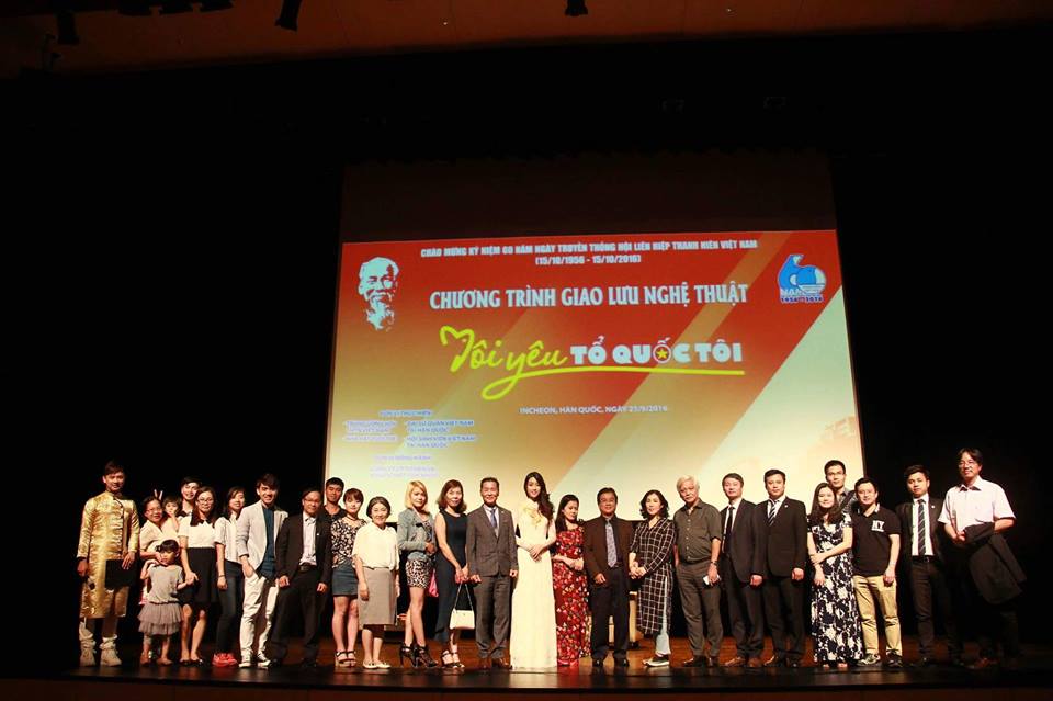 Tối 25 tháng 9 năm 2016, tại Trung tâm nghệ thuật Bupyeong - Nhà hát Dalnuri, Hàn Quốc, diễn ra chương trình giao lưu nghệ thuật “Tôi yêu Tổ quốc tôi”, một hoạt động đặc biệt kỷ niệm 60 năm ngày truyền thống Hội liên hiệp thanh niên Việt Nam. Chương trình do Trung ương Hội Liên hiệp thanh niên Việt Nam, Đại sứ quán Việt Nam tại Hàn Quốc, Nhà hát Tuổi trẻ Việt Nam và Hội người Việt Nam tại Hàn Quốc, Hội Sinh viên Việt Nam tại Hàn Quốc phối hợp tổ chức.