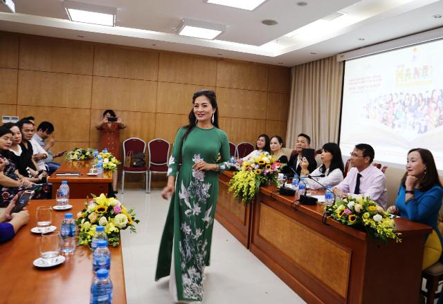 Nhà thiết kế Lan Hương mang đến buổi gặp gỡ báo chí một số mẫu áo dài qua các thời kỳ, sẽ được trình diễn trong ngày 17/8 tới |