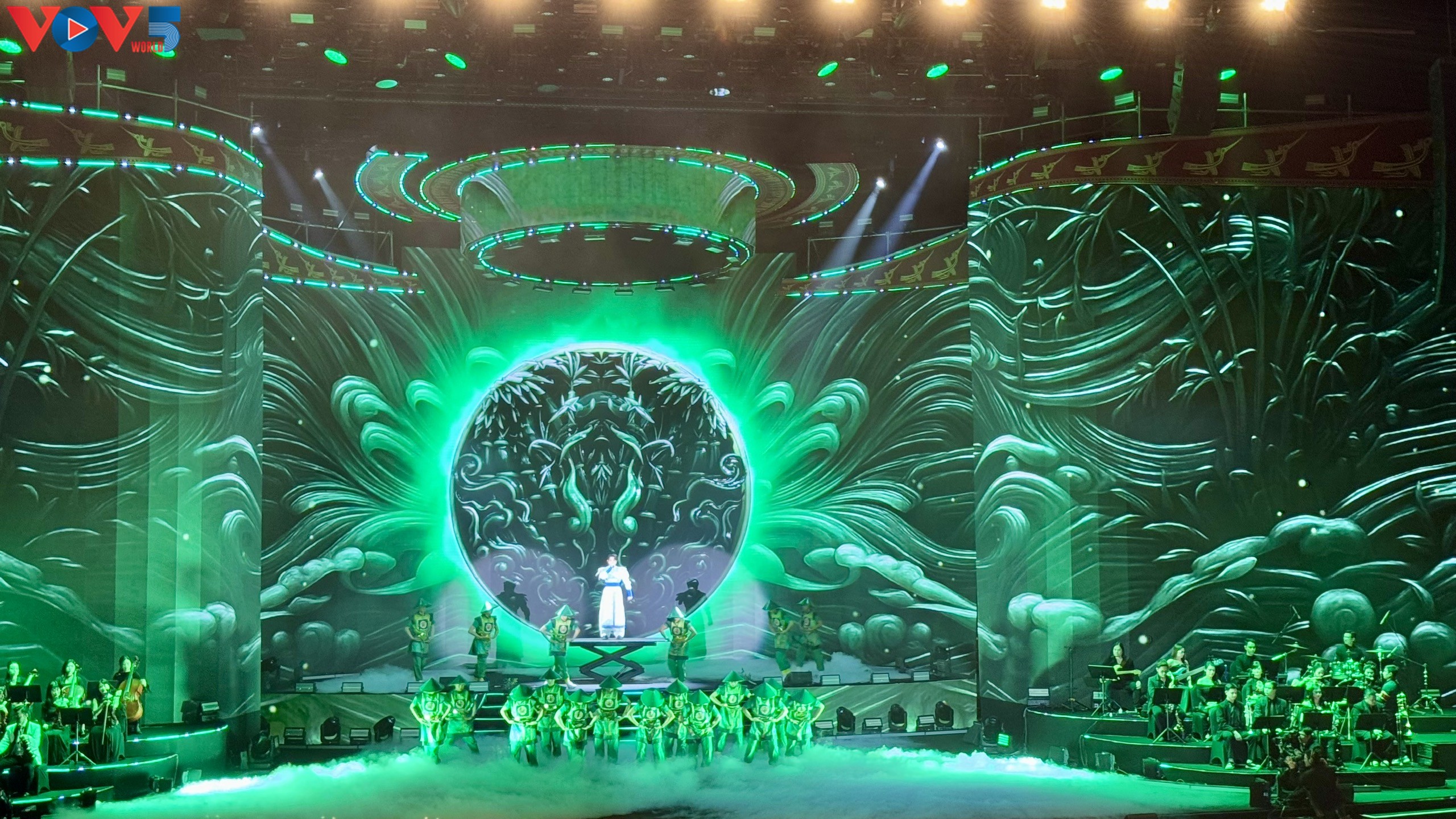 Ca khúc "Phù đổng thiên vương" do ca sĩ Đức Phúc trình bày, mở đầu chương trình nghệ thuật Xuân Quê hương 2026. |