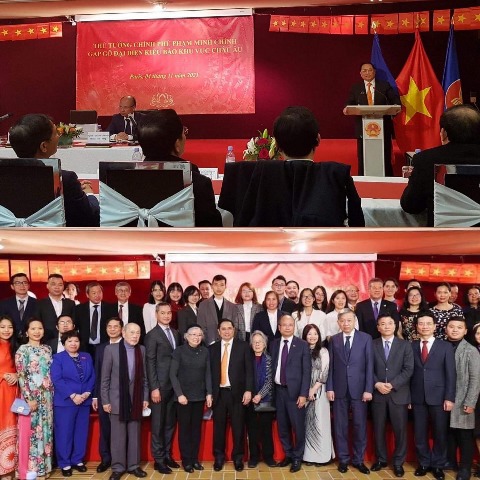 Lần đầu tiên, một cuộc gặp giữa Thủ tướng với kiều bào của 10 nước Châu Âu được tổ chức có ý nghĩa rất quan trọng. Bà con đã bảy tỏ tâm tư, đề xuất với Chính phủ nhiều ý kiến liên quan tới kết luận 12 của Bộ chính trị về công tác với người Việt Nam ở nước ngoài. Ông Nguyễn Hải Nam thông tin:“Về kiều bào, đối với kết luận 12, nếu nói về chủ trương của Bộ chính trị, thì trong chuyến thăm của Thủ tướng, gặp gỡ kiều bào 9 nước, không kể Pháp là 10 nước đấy là sáng kiến để mọi người kết nối. Những vấn đề thảo luận là xoay quanh ảnh hưởng của COVID đối với nền kinh tế, sức khỏe của mọi người trên thế giới, trong đó có Việt Nam. Các kiều bào kiến nghị chủ yếu về quốc tịch, trăn trở về văn hóa, trong đó có tiếng Việt”.