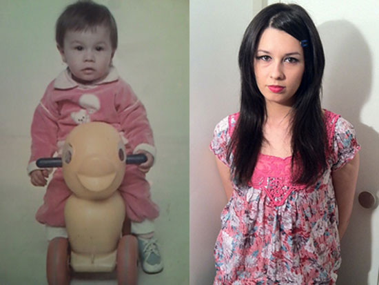 | Katrin hồi nhỏ (trái) và hiện tại. Cô không được gặp mặt cha từ khi còn nhỏ xíu. (Ảnh do Katrin cung cấp). |
