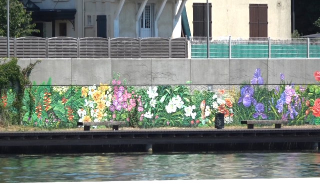 6 họa sĩ Việt Nam đã biến bờ sông Seine nở hoa với nhiều loài hoa của mỗi nước như hoa sen, cúc họa mi của Việt Nam hay hoa diên vỹ, hoa mộc lan của Pháp.