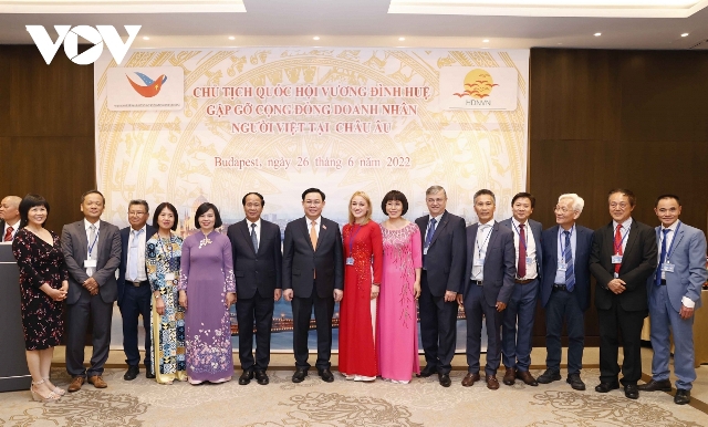 Trong khuôn khổ chuyến thăm chính thức Hungary, tối 26/6, Chủ tịch Quốc hội Vương Đình Huệ gặp gỡ cộng đồng doanh nhân người Việt tại châu Âu.