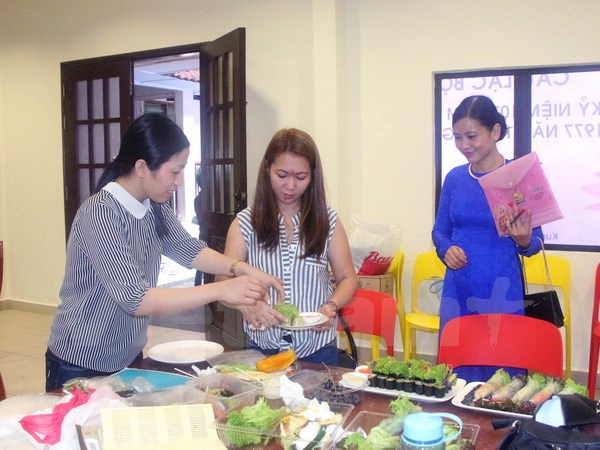 | Chị em chuẩn bị cho phần thi nấu ăn. (Ảnh: Hoàng Nhương/Vietnam+) |