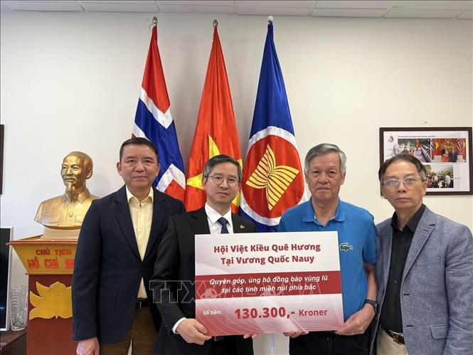 Tại trụ sở Đại sứ quán Việt Nam ở Oslo, Na Uy, vừa diễn ra Lễ trao tượng trưng số tiền quyên góp của cộng đồng người Việt tại Na Uy ủng hộ đồng bào trong nước khắc phục thiệt hại do cơn bão Yagi gây ra.