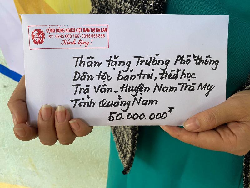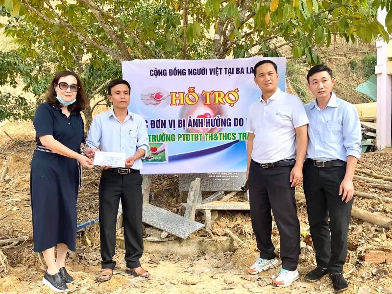 Cũng có mặt ngày hôm đó, cô giáo Võ Thị Sang, Phó hiệu trưởng trường Phổ thông dân tộc bán trú tiểu học Trà Vân cho biết: "Trong cơn bão số 12, nhà trường đã bị sụp một phòng học, 3 phòng khác đất và nước tràn vào. Điều đáng buồn nhất là trường đã mất 2 em học sinh, khi các em về nhà với gia đình ở trong ngôi làng bị sạt đất, cả làng mất 8 người. Trường hiện có 360 em học sinh, dân tộc Ka Dong, gia đình khó khăn lắm. Nhà nước và một số tổ chức cũng đã đến hỗ trợ cho các em. Hôm nay lại nhận được sự sẻ chia của cộng đồng người Việt ở Ba Lan, tôi rất cảm ơn và trước mắt sẽ dùng số tiền này để sửa lại phòng học cho các em đến lớp được an toàn".