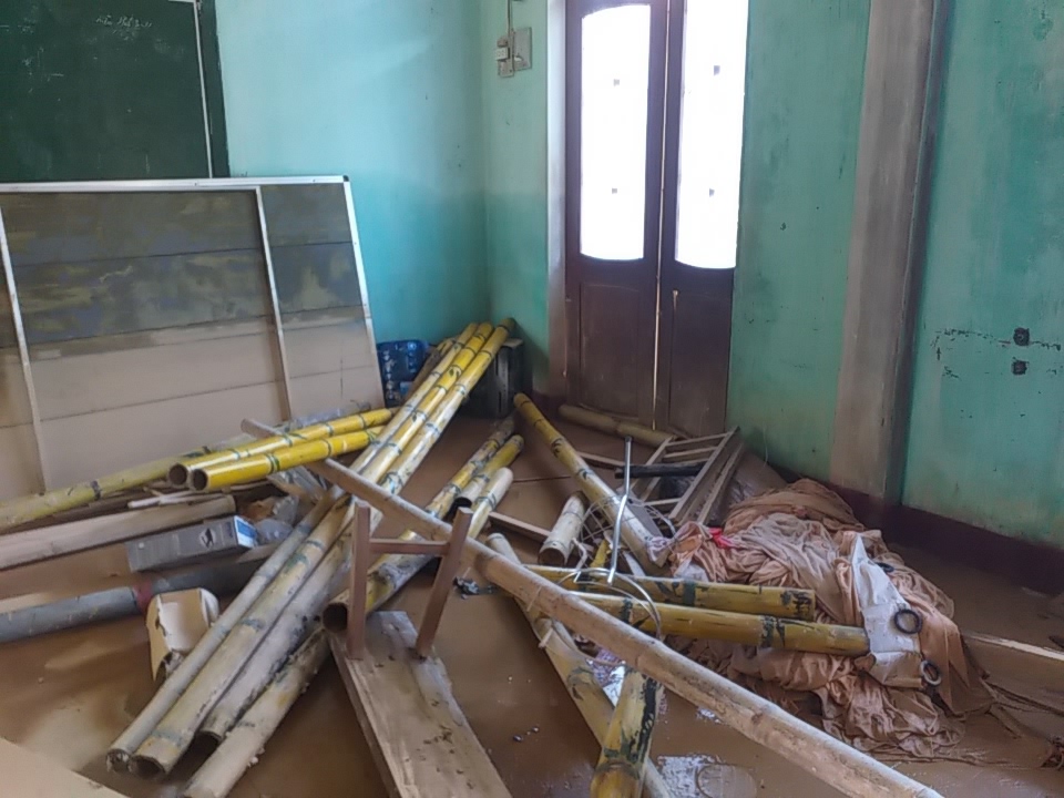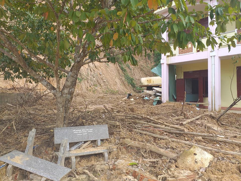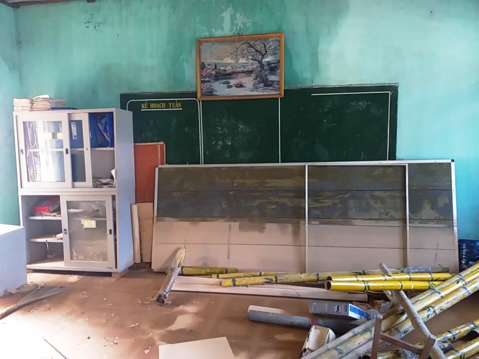 Khi đoàn chúng tôi đến trường mầm non Hoa Mai, vì đúng ngày 20/11 nên các bé được nghỉ học sớm. Cô hiệu trưởng Trịnh Thị Thanh đứng đón đoàn trước cổng, rơm rớm nước mắt dắt chúng tôi xem những gì còn lại sau khi cơn lũ đi qua.