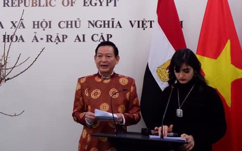 | Đại sứ Trần Thành Công chúc Tết bà con Việt kiều nhân dịp năm mới 2020. Ảnh: Đại sứ quán Việt Nam tại Ai Cập. |