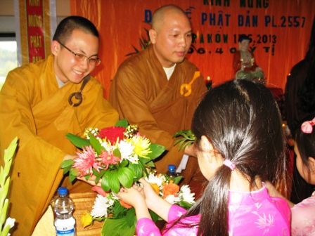 Đại đức Thích Đức Đạt- Giáo thọ sư thường trực chùa Nhân Hòa Warszawa chủ trì Đại Lễ.
