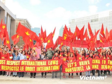 Chiều 23/5, hàng trăm người Việt Nam đang học tập, sinh sống và làm ăn tại Bỉ đã tổ chức míttinh trước trụ sở Hội đồng châu Âu tại thủ đô Brussels (Bỉ) để phản đối hành động của Trung Quốc hạ đặt trái phép giàn khoan Hải Dương-981 trong vùng biển đặc quyền kinh tế và thềm lục địa của Việt Nam.