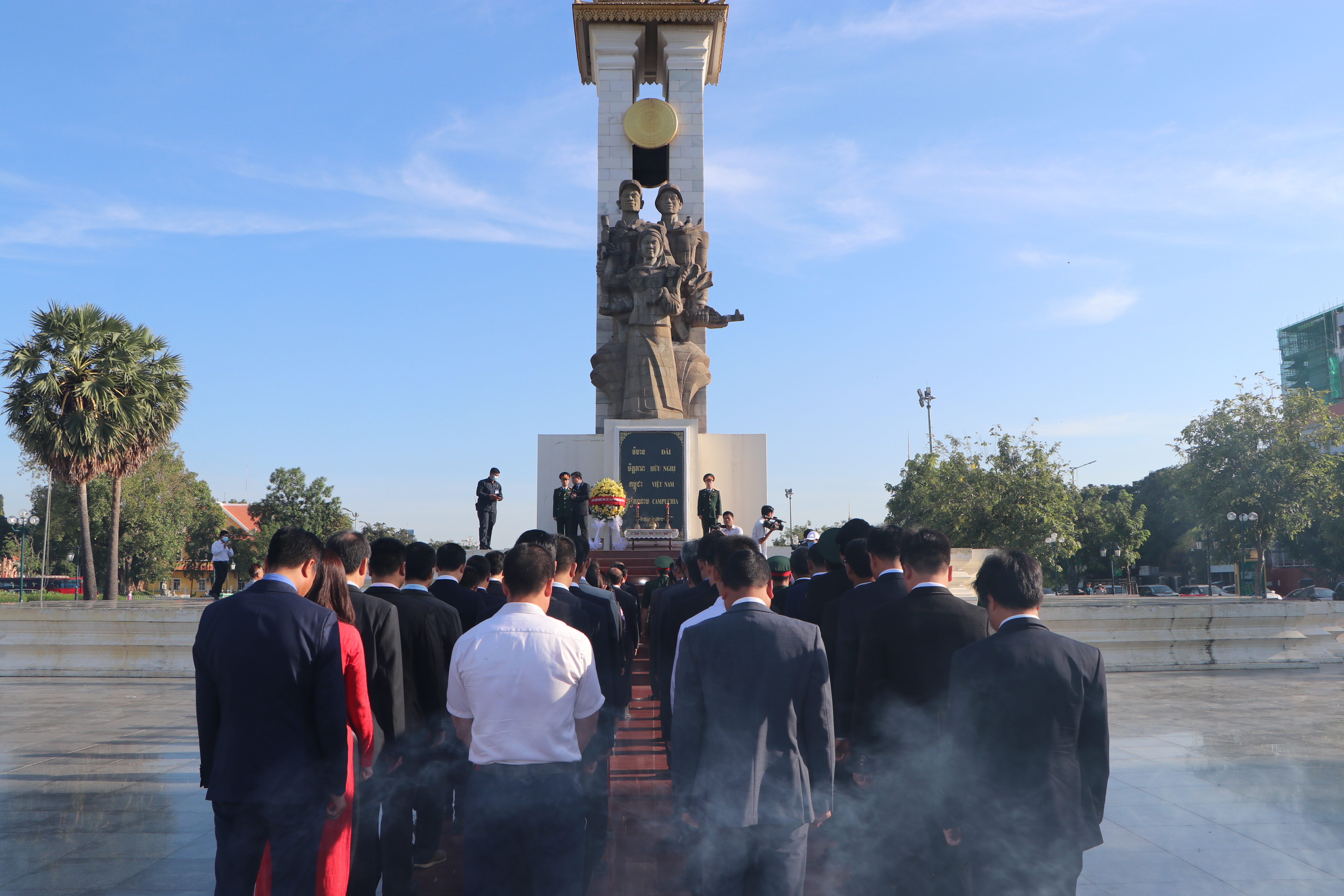 Ngày 31/8, tại Thủ đô Phnom Penh, Vương quốc Campuchia, Đại sứ quán Việt Nam tại Campuchia cùng các cơ quan bên cạnh Đại sứ quán, đại diện cộng đồng người Việt và các doanh nghiệp Việt Nam đang làm ăn tại Campuchia dâng hương tưởng niệm các anh hùng liệt sĩ tại Đài Hữu nghị Việt Nam - Campuchia nhân dịp Quốc khánh 2/9.