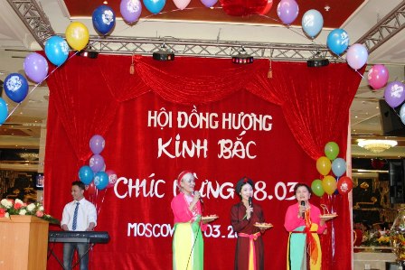 Tại Liên bang Nga, đến nay đã có ngót 10 hội đồng hương, quy tụ bà con của các tỉnh, thành phố của Việt Nam đang làm ăn, sinh sống tại Liên bang Nga tham gia. Có hội mới thành lập được 1, 2 năm nay, có hội cũng đã có ngót chục năm hoạt động và các hội đang ngày càng khẳng định vai trò của mình trong rất nhiều công việc, trong đó chủ yếu là các hoạt động thiết thực hướng đến cộng đồng… Chăm sóc đời sống tinh thần của bà con, cũng gần như đồng loạt, trong dịp này, các hội đồng hương đã tổ chức những cuộc gặp mặt, liên hoan văn nghệ và ẩm thực để chúc mừng chị em.