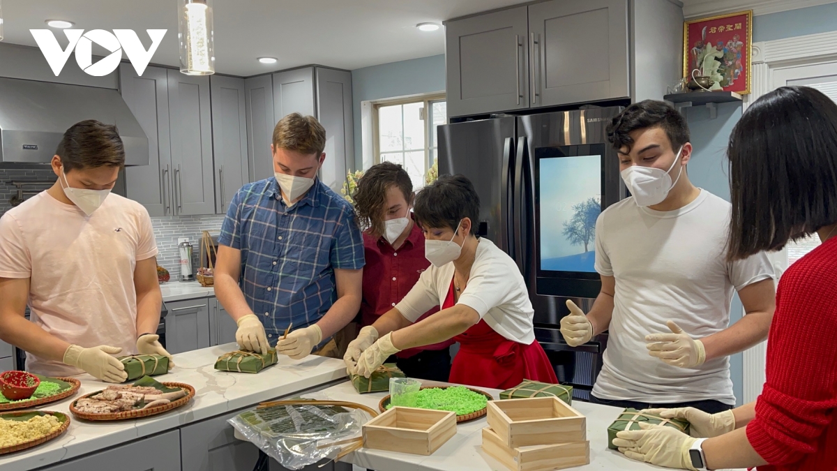 Khác với mọi năm, không khí chuẩn bị Tết của nhà chị Anna lần này có sự tham gia của một số bạn trẻ người Mỹ rất háo hức tìm hiểu về văn hóa Việt Nam và đó là lý do gia đình chị Anna vẫn cố gắng tổ chức gói bánh chưng trong bối cảnh dịch bệnh Covid-19.