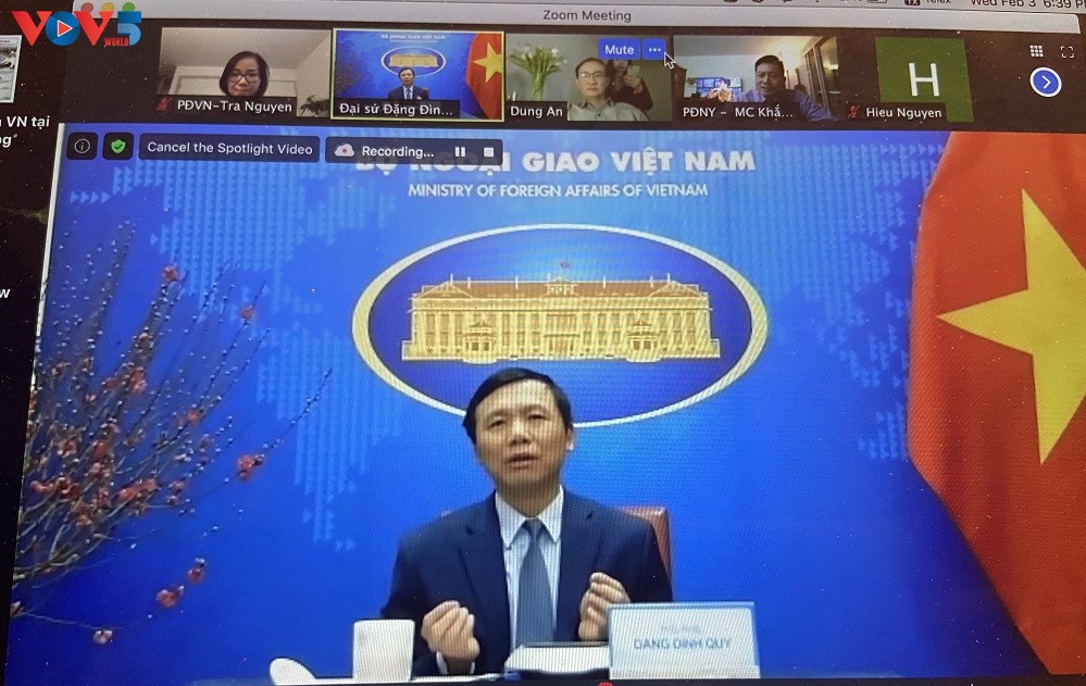 Tối 3/2, Phái đoàn Đại diện thường trực Việt Nam tại Liên hợp quốc (LHQ) cùng Lãnh sự quán Việt Nam tại thành phố New York tổ chức gặp mặt trực tuyến đón Tết Tân Sửu với sự tham dự của hơn 100 bà con kiều bào, cán bộ, học sinh, sinh viên Việt Nam và bạn bè quốc tế đang sinh sống, lao động, học tập tại nhiều nơi trên đất Mỹ, nhất là ở New York và vùng phụ cận.