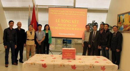 Tổng lãnh sự quán Việt Nam tại thành phố Ekaterinburg, Liên bang Nga, vừa tổ chức lễ tiếp nhận số tiền 95.000 ruble do đại diện doanh nghiệp và cộng đồng người Việt tại đây quyên góp ủng hộ đồng bào bị bão lụt tại tỉnh Quảng Ninh.