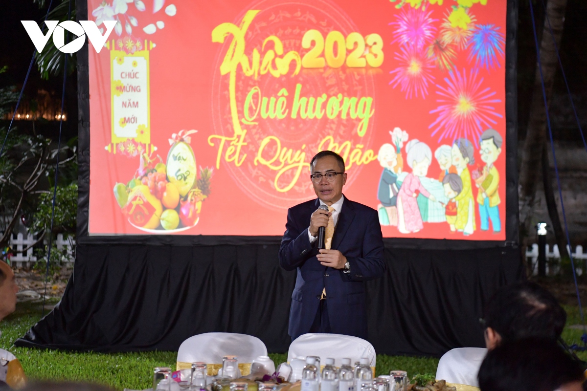 Đại sứ đã thông báo tới bà con những thành tựu mà Việt Nam đã đạt được trong năm qua trên tất cả các lĩnh vực. “Là người Việt Nam, chúng ta hoàn toàn có quyền tự hào và phấn khởi. Trong năm qua, trong bối cảnh sau đại dịch Covid-19 và đất nước mở cửa trở lại, đất nước chúng ta, với sự cố gắng của toàn dân, dưới sự lãnh đạo của Đảng và Nhà nước, chúng ta đã đạt được những thành tựu hết sức phấn khởi”, ông Phan Chí Thành nói.