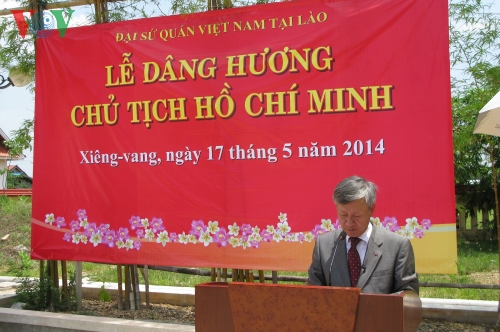 Sáng 17/5, tại khu di tích Hồ Chí Minh, bản Xiengvang, tỉnh Khammuan, Đại sứ quán Việt Nam tại Lào chủ trì lễ dâng hương tưởng niệm Bác nhân kỷ niệm lần thứ 124, ngày sinh của Người (19/5/1890-19/5/2014).