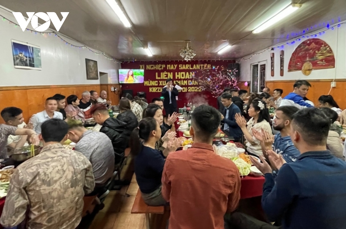 Ngày chủ nhật cuối cùng của năm Tân sửu, các công nhân Việt Nam tại công ty may Sarlanter, đóng tại thành phố Kirzhach, tỉnh Vladimir-LB Nga vẫn miệt mài bên những chiếc máy may. Khác hơn ngày thường một chút là công việc kết thúc sớm, vào lúc 4h chiều, chờ đón họ là bữa liên hoan tất niên với màn biểu diễn văn nghệ “cây nhà lá vườn” chia tay năm cũ, đón năm mới Nhâm dần 2022.