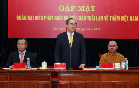 (VOV5) - Chiều 27/3, tại Hà Nội, Chủ tịch Ủy ban Trung ương Mặt trận Tổ quốc (MTTQ) Việt Nam Nguyễn Thiện Nhân tiếp đoàn 50 đại biểu Phật giáo Annam Kiya và kiều bào Thái Lan nhân dịp về thăm Việt Nam.