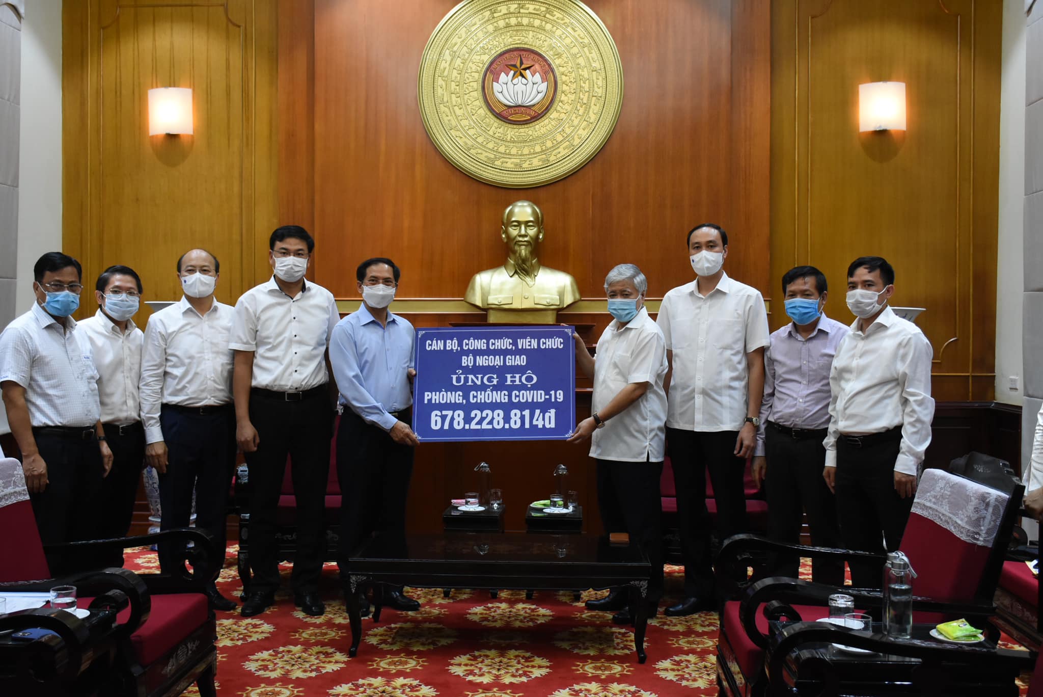 Bộ trưởng Ngoại giao Bùi Thanh Sơn đã trao số tiền quyên góp của bà con kiều bào cho Uỷ ban Trung ương Mặt trận tổ quốc Việt Nam ủng hộ Quỹ Vaccine phòng, chống Covid-19 và cuộc chiến chống Covid-19 tại các địa phương.Ảnh quehuong online |