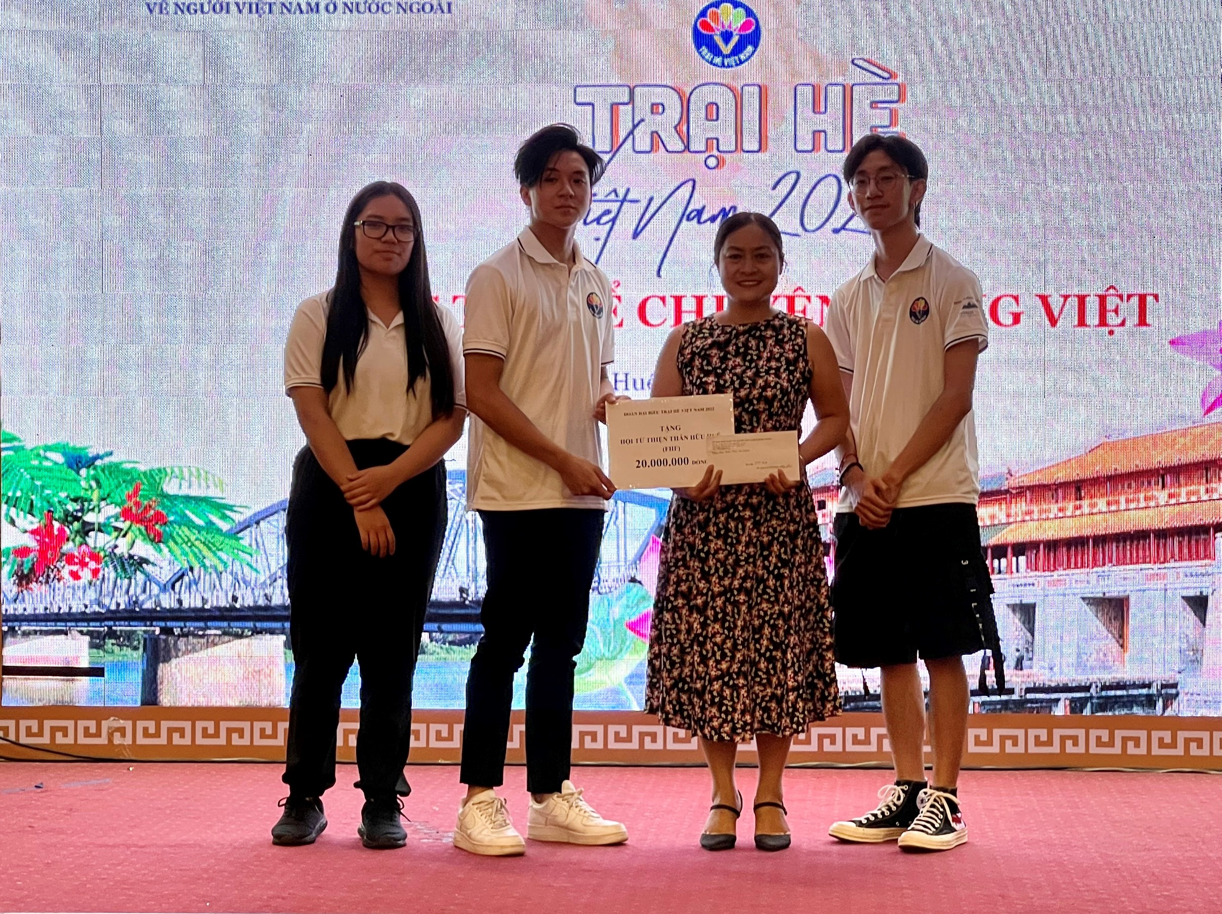 Nhân dịp này, đoàn đại biểu Trại hè Việt Nam tặng 20 triệu đồng cho Trung tâm bảo trợ trẻ em FHF, Huế để các em nhỏ của Trung tâm vơi bớt khó khăn.