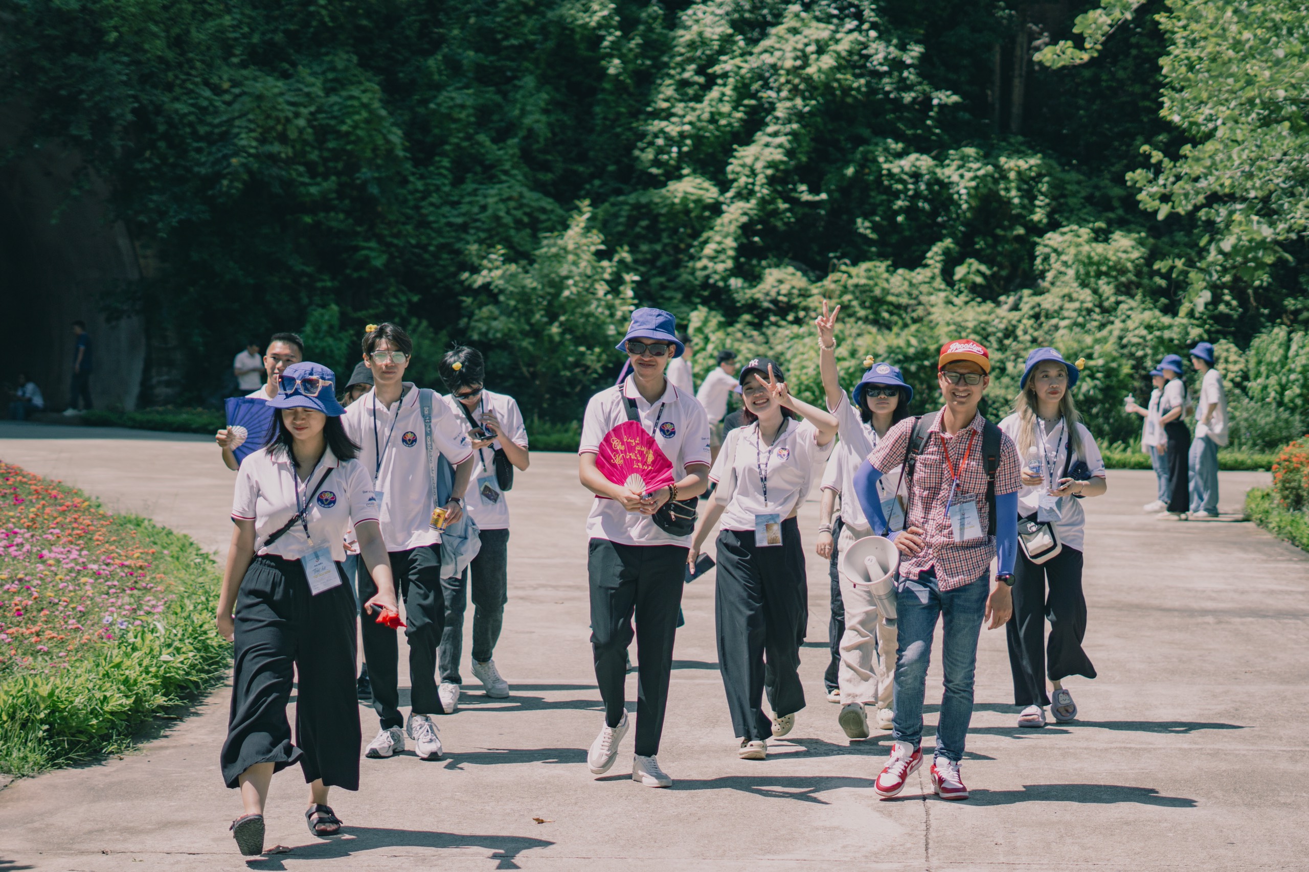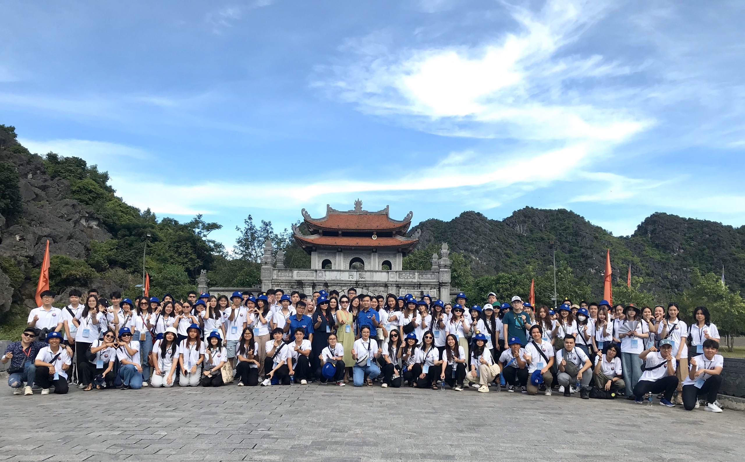 Đoàn Trại hè Việt Nam 2023 chụp ảnh tập thể tại cố đô Hoa Lư. |