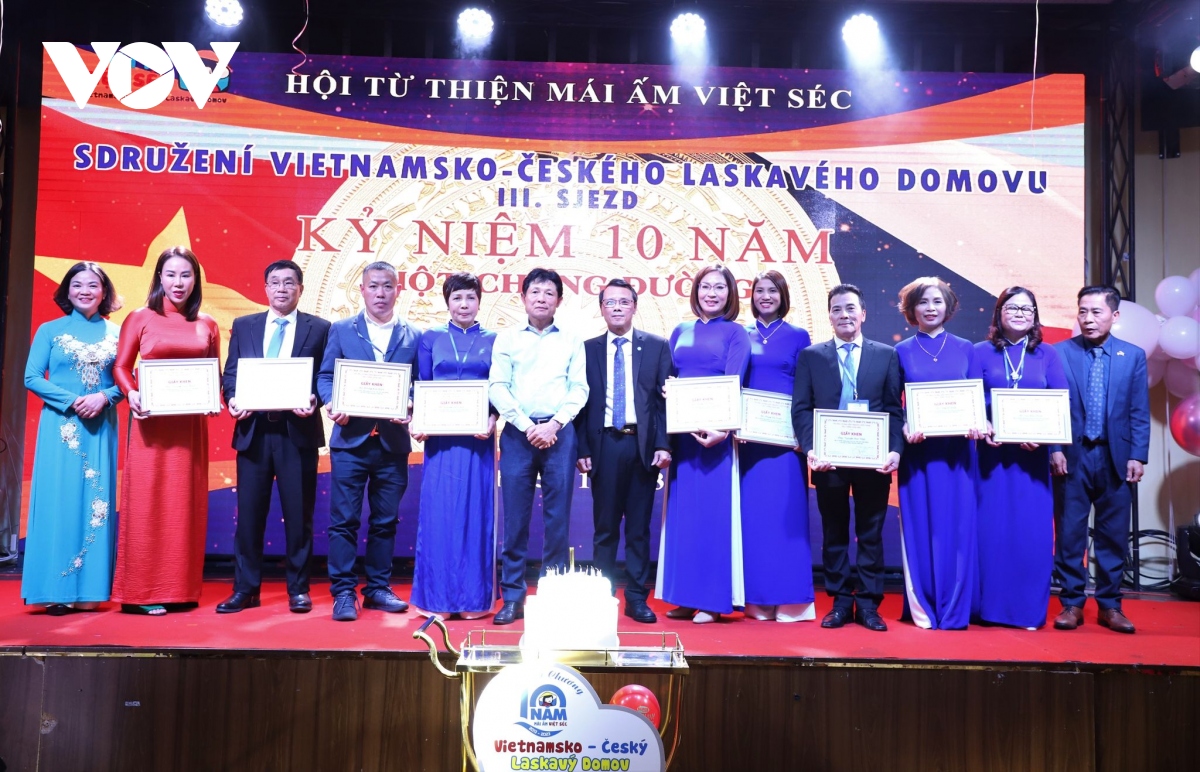 Hội người Việt Nam tại Séc trao tặng bằng khen cho các cá nhân có nhiều đóng góp cho hoạt động vì cộng đồng. Ảnh: PV/VOV-Praha |