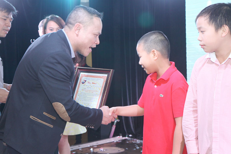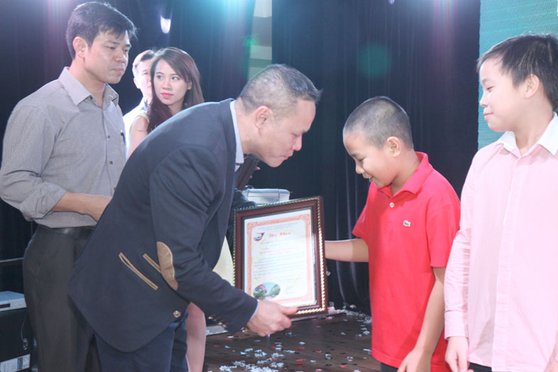 Ông Phạm Đức Vinh trao phần thưởng cho các cháu tham gia Trò chơi đố vui có thưởng