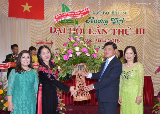 (VOV5) - Ngày 29/8/2014 tại Hội trường Hoàng Thành, Trung tâm thương mại Sapa, Praha, Cộng hòa Séc đã diễn ra Đại hội Đại biểu lần thứ 3 của CLB Phụ nữ Hương Việt. Gần 100 đại biểu đã tới tham dự. Đại hội có sự hiện diện của Đại sứ Trương Mạnh Sơn cùng phu nhân, ông Hoàng Đình Thắng cùng lãnh đạo các Hội Phụ nữ, Phật tử, các Hội đồng hương....