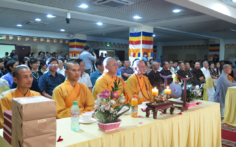 Trong không khí trang trọng, thành kính, đông đảo bà con Việt Nam cùng các phật tử xa quê thêm một lần được nghe Thượng tọa Thích Minh Hiền thuyết pháp về ơn nghĩa sinh thành và bổn đạo làm con đối với cha mẹ và về ý nghĩa của những bông hồng cài áo, biểu tượng cho tình cảm thiêng liêng cao quý của những người con dành cho cha mẹ.