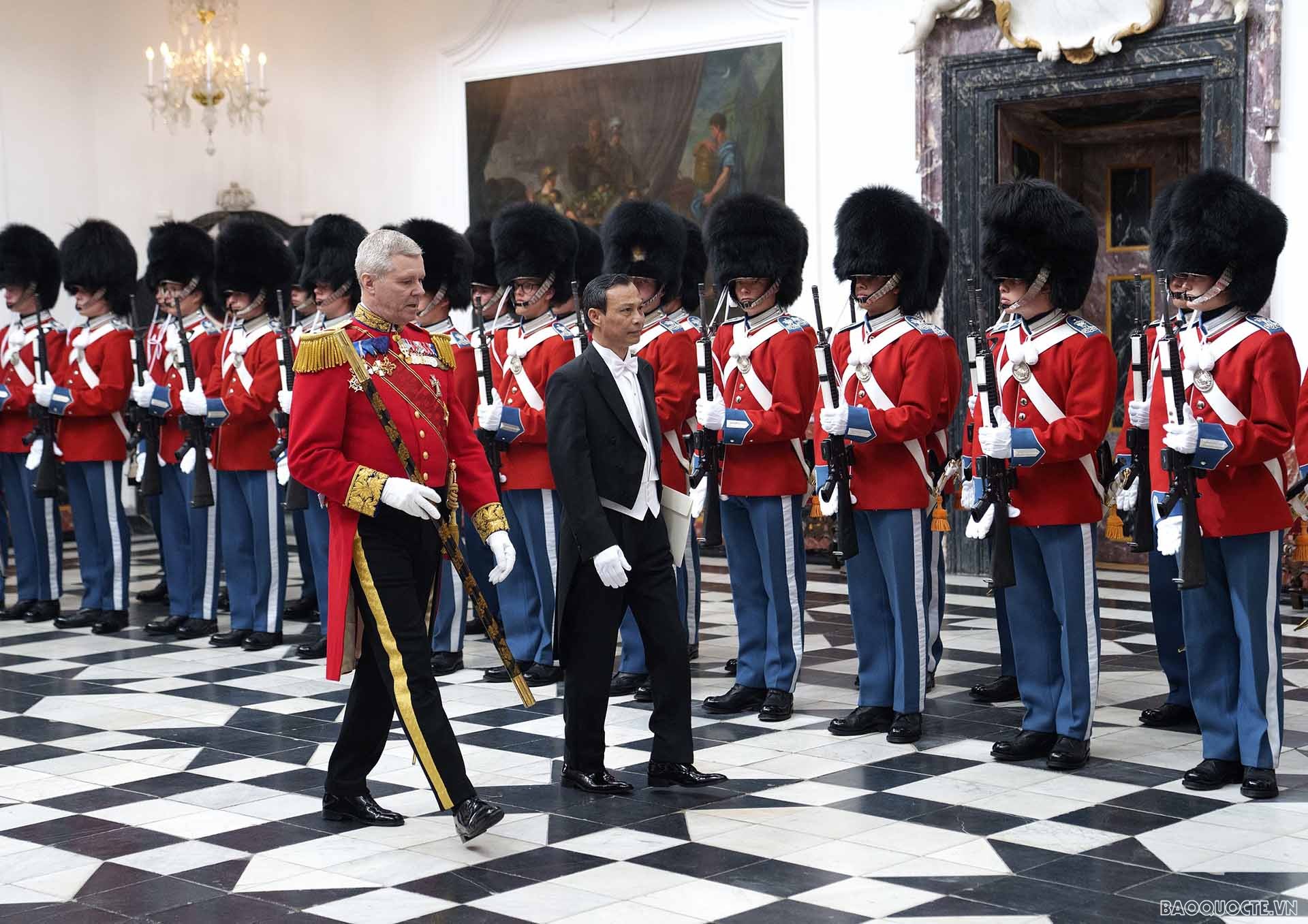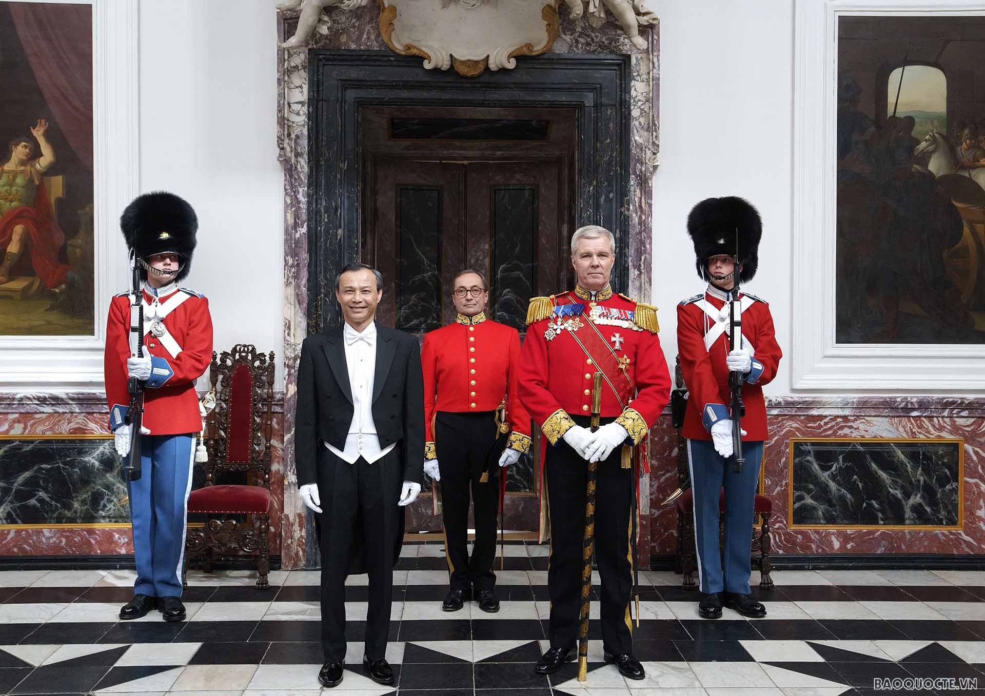Tại Cung điện Fredensborg, Đại sứ Lương Thanh Nghị trình Thư ủy nhiệm lên Nữ hoàng Đan Mạch Margrethe II. |