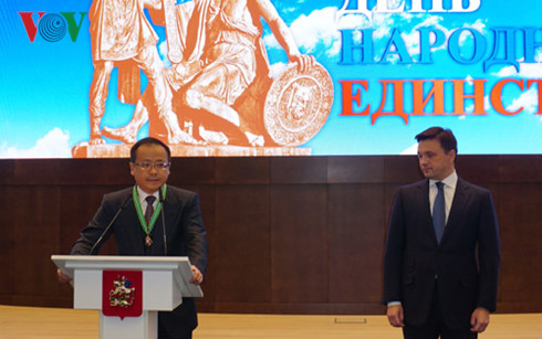 Ngày 2/11, tại trụ sở Tỉnh Moscow (Nga) đã diễn ra buổi lễ trọng thể, trao tặng các cá nhân xuất sắc trên nhiều lĩnh vực những phần thưởng Quốc gia, Tỉnh và Tỉnh trưởng, nhân dịp kỷ niệm Ngày Thống nhất Toàn dân (7/11). Trong số 32 cá nhân được nhận các tặng thưởng cao quý lần này có 2 người Việt Nam là Đại sứ đặc mệnh toàn quyền Việt Nam tại LB Nga, Nguyễn Thanh Sơn và Tổng giám đốc Công ty “Maraven Food Central”.