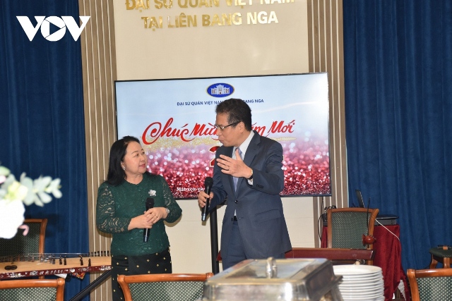 Đại sứ Việt Nam tại Nga Đặng Minh Khôi phát biểu cảm ơn đoàn Đại sứ quán Lào tại Nga đến chúc Tết cổ truyền. Ảnh: PV/VOV-Moscow |